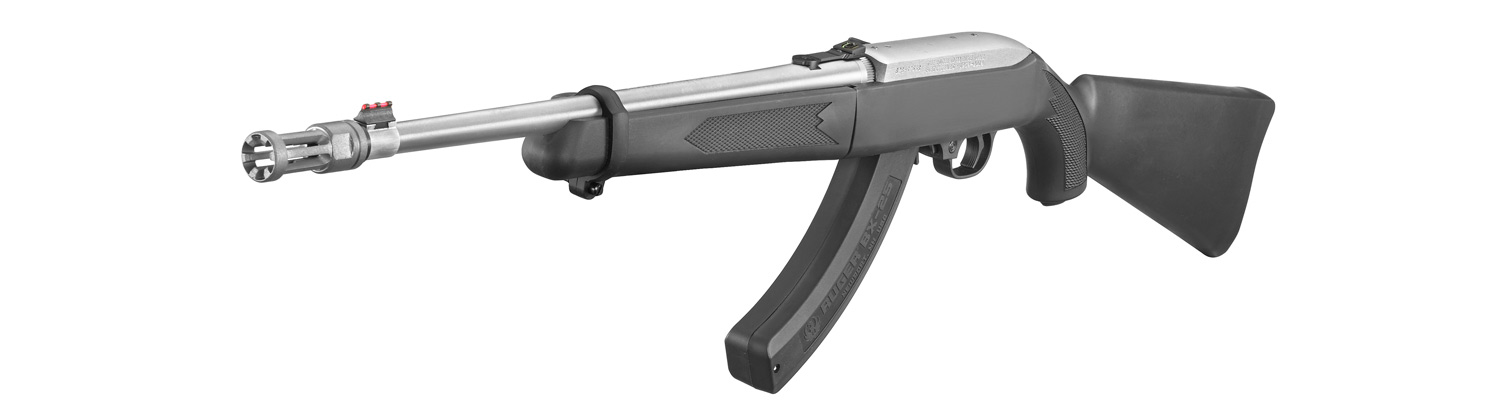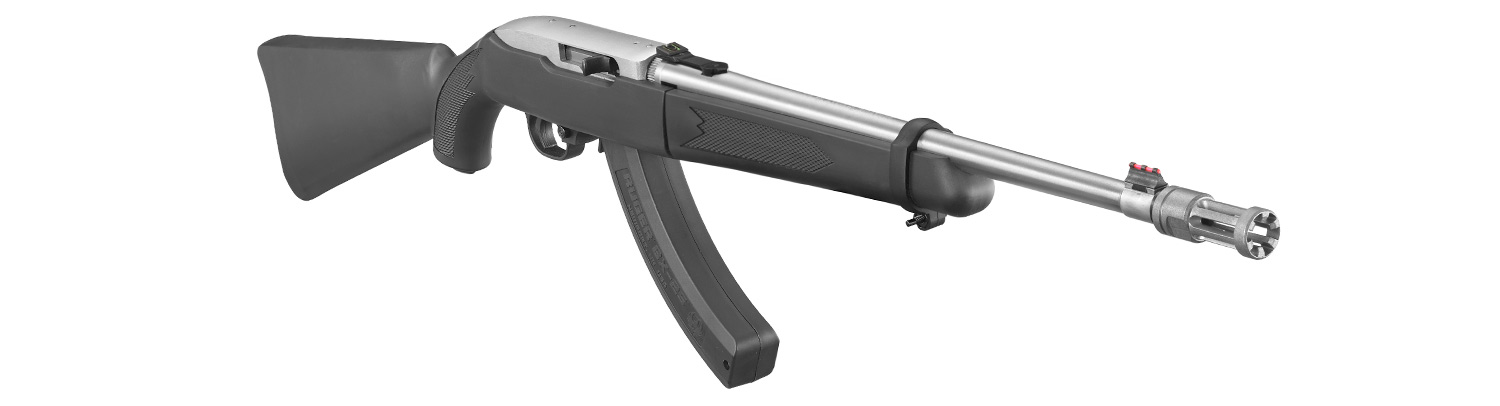 Precision-rifled, cold hammer-forged barrel capped with a Ruger® flash suppressor mounted with a 1/2"-28 thread.