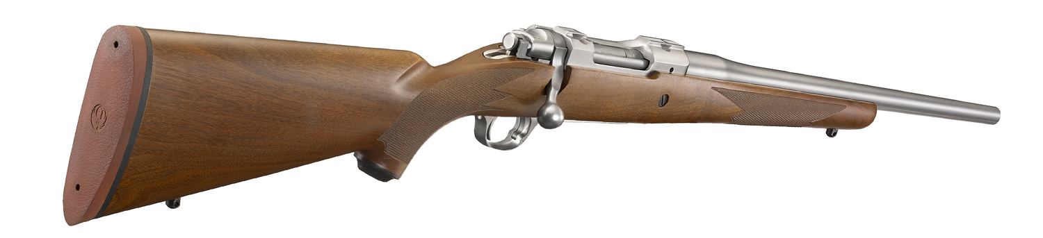 Hinged, solid-steel floorplate for easy unloading without having to chamber each cartridge. Features an engraved Ruger logo and patented latch that is flush with the trigger guard to avoid accidental dumping of cartridges.