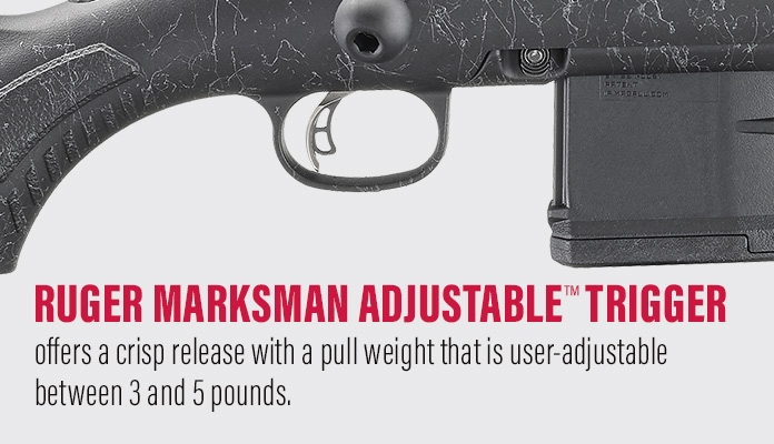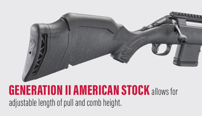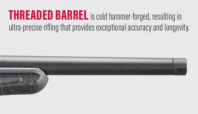 Generation II Patrol models feature a bull contour, cold hammer-forged barrel that helps to mitigate recoil and a Graphite Black Cerakote barreled action. The black stock is textured with gray splatter for excellent grip and control in the field.