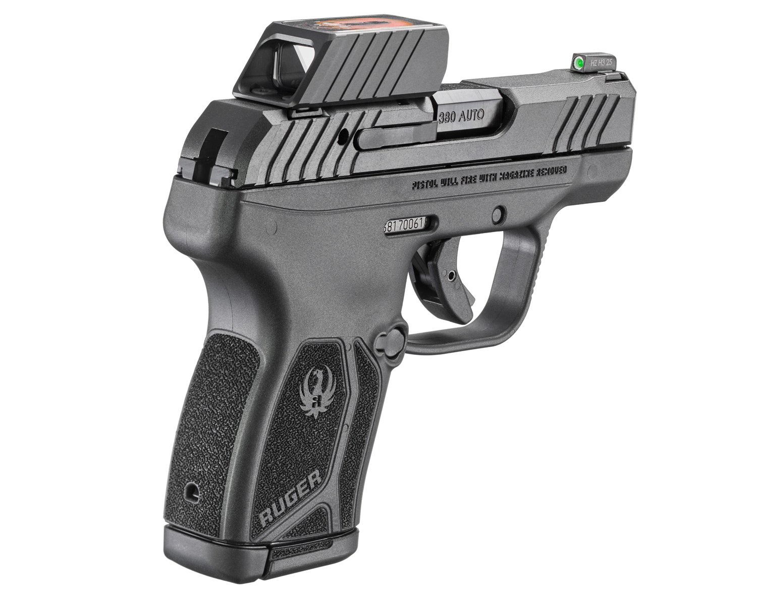 Features a factory-mounted, co-witnessed Ruger® ReadyDot® micro reflex sight featuring a large 15 MOA red aiming dot. Light-gathering fiber optic automatically adjusts to the light conditions. Waterproof and shock resistant with no batteries or buttons for ultimate reliability.
