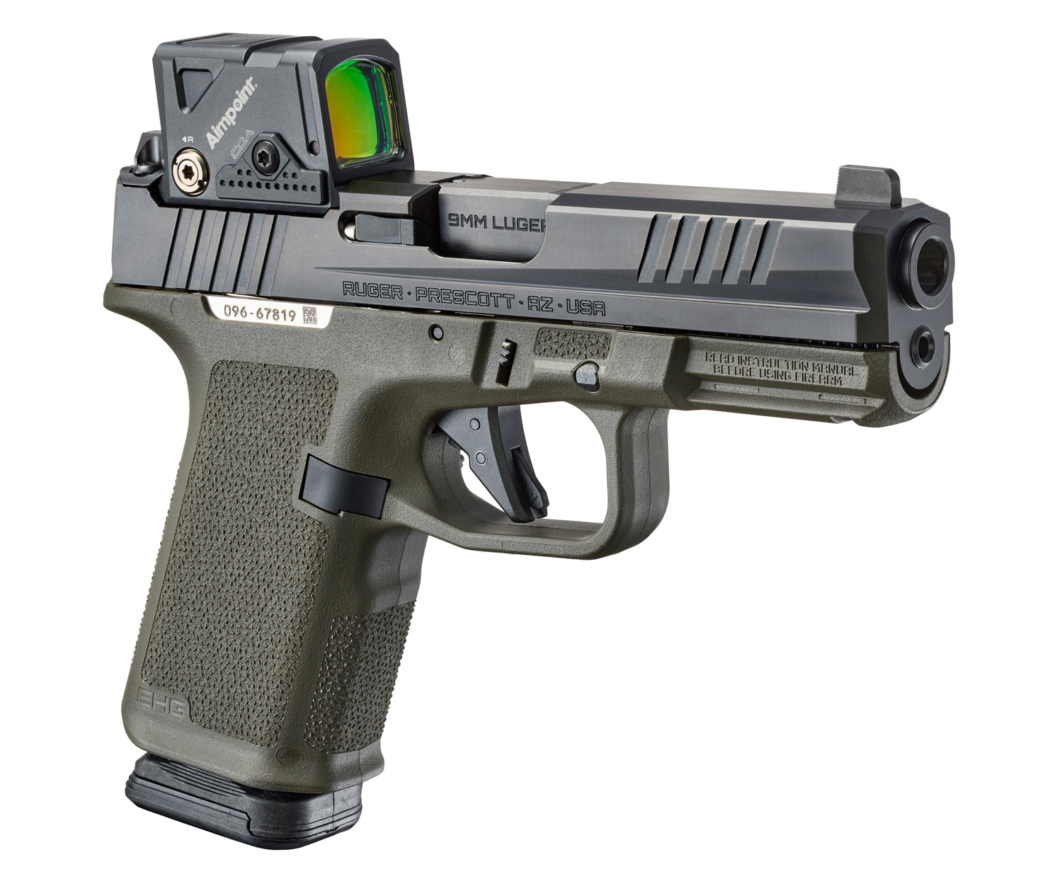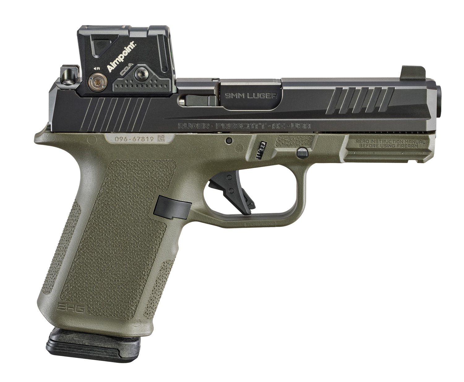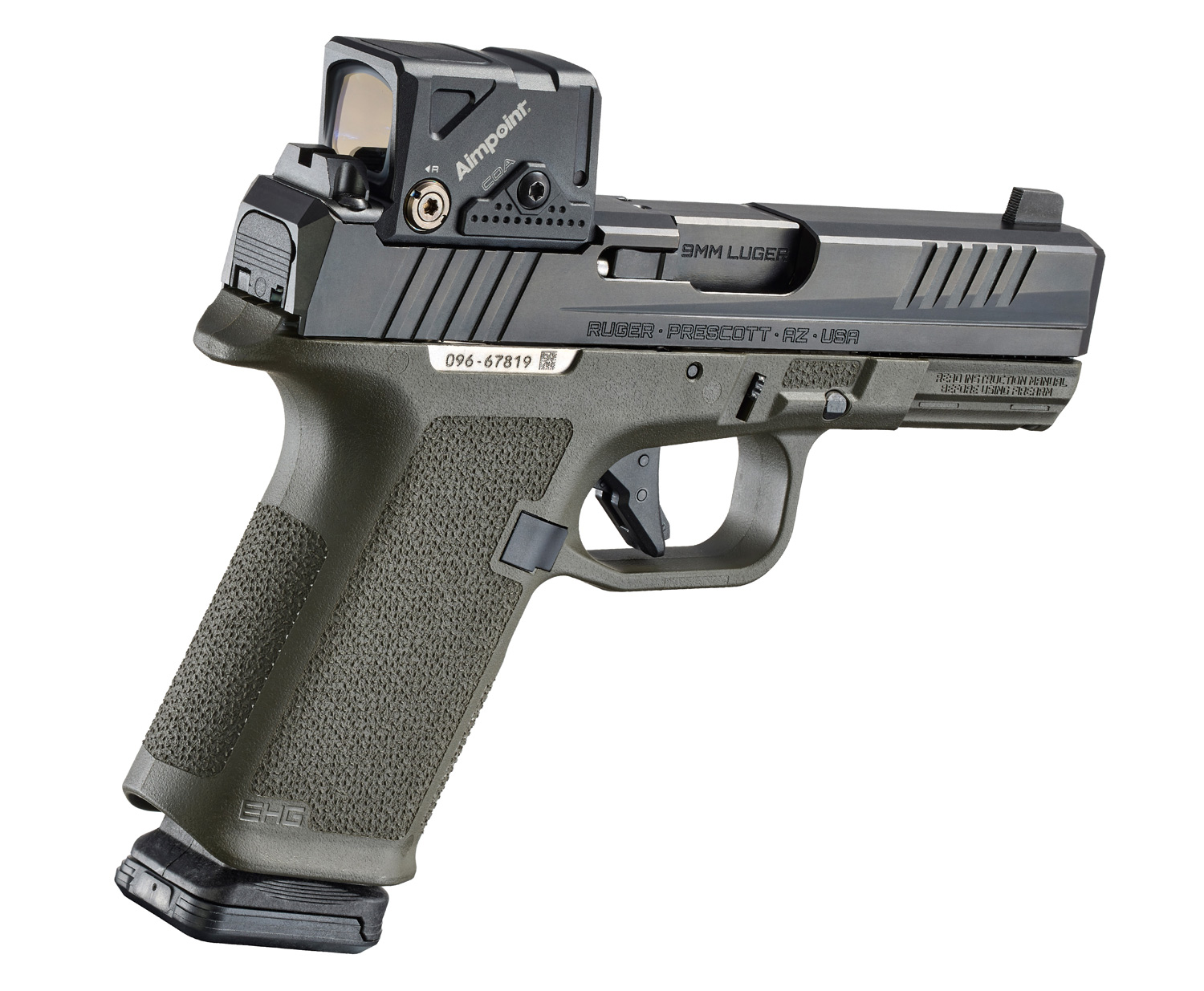 Other EHG features include: a low-profile, flared magazine well for quick and easy magazine insertion; a trigger guard undercut and beaver tail that promote a high grip for better control; a magazine release scallop for easy access; and a universal-pattern accessory rail for use with a variety of lights and lasers.
